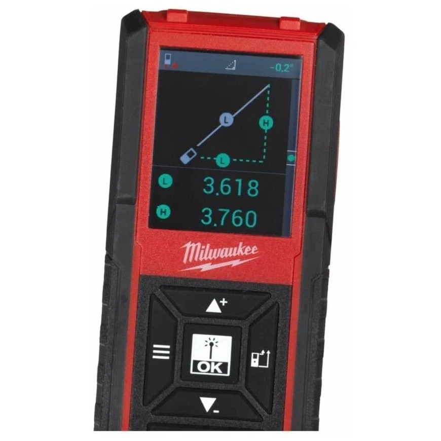 БрендMilwaukeeЦвет товаракрасныйТиплазерныйДальность измерения (без отражателя)100 мМинимальное расстояние измерений5 смКоличество точек начала отсчета4Тип питаниябатарейкиТочность измерения1.5 ммКоличество сохраняемых замеров30Резьба под штативестьВес140 гФункции и особенностиВычисление объема, Вычисление площади, Непрерывное измерение расстояния, Построение уровня/плоскости, Сложение и вычитание площадейКласс лазера2Длина волны635 нмКласс защиты (IP)IP54В комплекте2 батареи ААА, Коробка., Лазерный дальномер, Нейлоновая сумкаДополнительная информациятрехстрочный дисплей, откидная скоба, самовыравнивание, чехол, 113x48x31 ммДополнительноДальность измерения, м100Погрешность измерения±1.5 мм