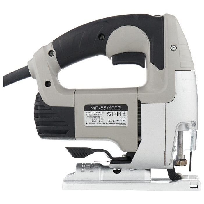 Литая опорная плита обеспечивает высокую точность работы и позволяет выставить нужный угол резания. Фиксатор подошвы – быстрозажимной в виде рычага, поэтому дополнительный инструмент для установки угла наклона не нужен. В конструкции электролобзика реализован узел крепления пилки Quick Fix от немецкой фирмы laKRESS. Чтобы заменить полотно, достаточно нажать на рычаг. Подвижный защитный экран предотвращает разброс стружки на линию реза и в сторону оператора. Предусмотрена возможность подключения пылесоса через патрубок. Корпус редуктора Интерскол МП-85/600 отлит из сплава цветных металлов, что обеспечивает жесткость конструкции и хорошее охлаждение при длительных работах.