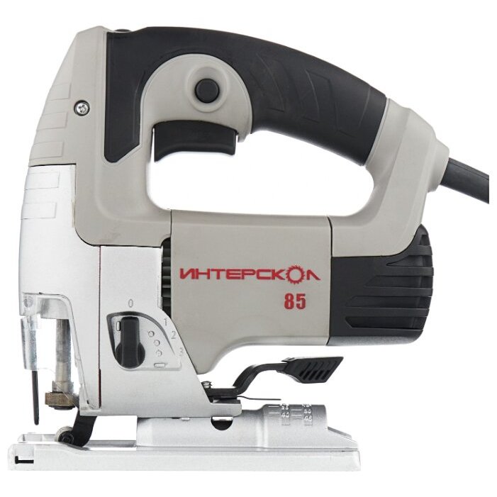 Чтобы ускорить процесс резания производитель наделил лобзик Интерскол МП-85/600Э маятниковым механизмом. При его включении к возвратно-поступательным движениям пилки добавляются горизонтальные колебания. Переключатель маятникового хода имеет 4 фиксируемых положения. Выбор амплитуды осуществляется с учетом твердости и толщины материала. Высокая амплитуда ускорит резку древесины, но при распиливании металла или когда требуется высокое качество поверхности реза, маятниковый ход лучше отключить. Мощности двигателя в 600 Вт достаточно, чтобы успешно резать древесину толщиной до 85 мм, раскроить листовую сталь толщиной 8 мм и алюминий до 15 мм.