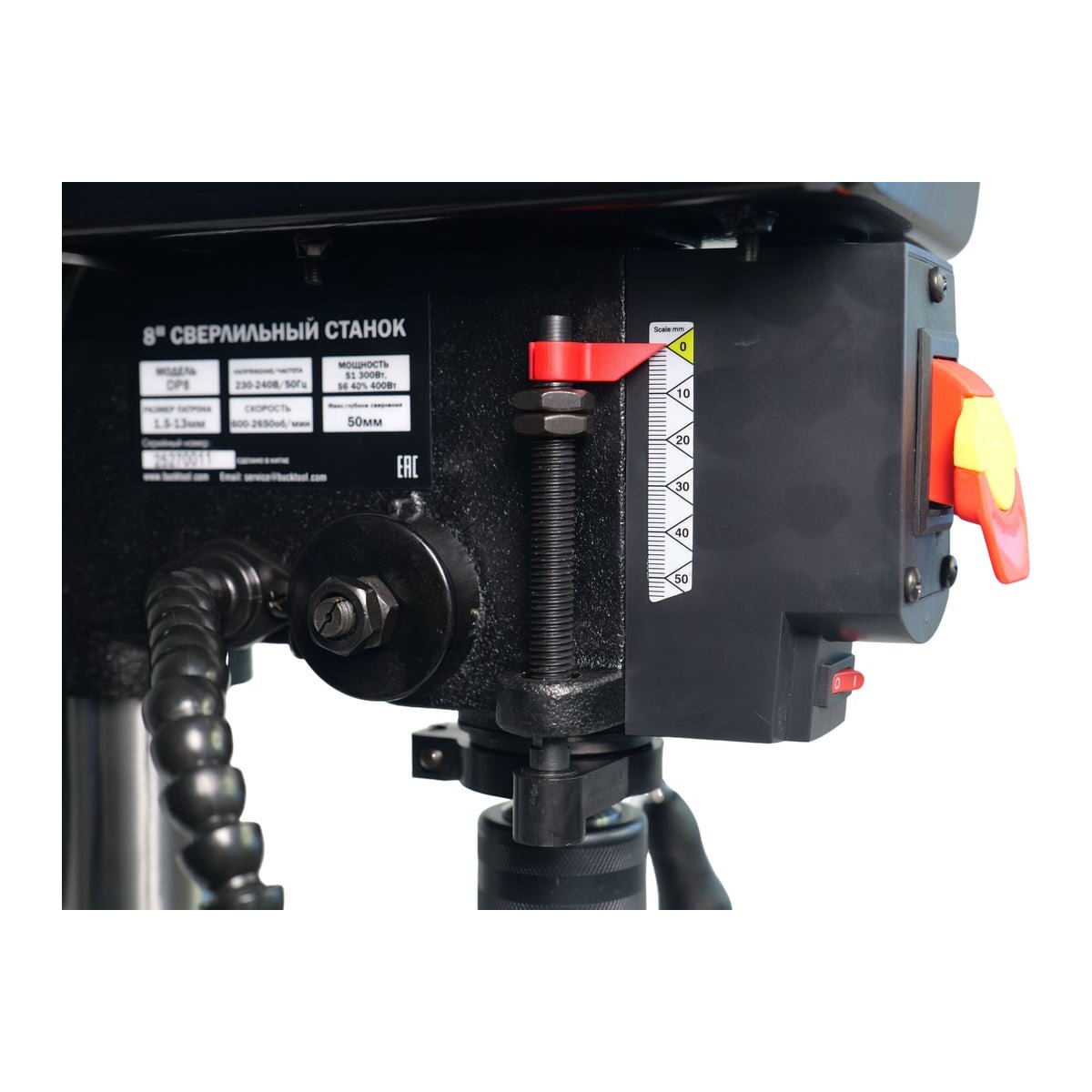 - Подсветка рабочей зоны: Четкая видимость области сверления для точности.