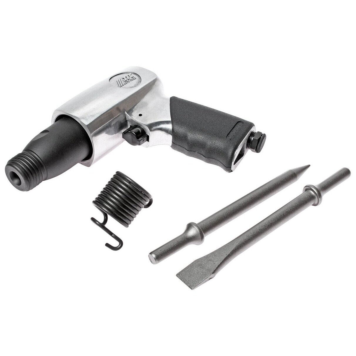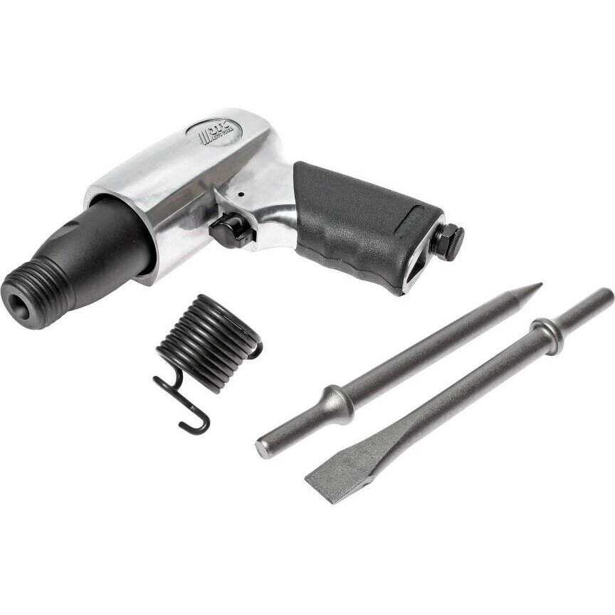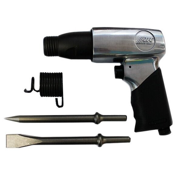 JTC-3309 – это пневматический молоток в комплекте с 2 зубилами по 175 мм длинной, применяемый для проведения ремонтных работ с возможностью использования ударного механизма в условиях помещений имеющих пневмолинию и источник сжатого воздуха или компрессор, необходимой мощности и производительности.