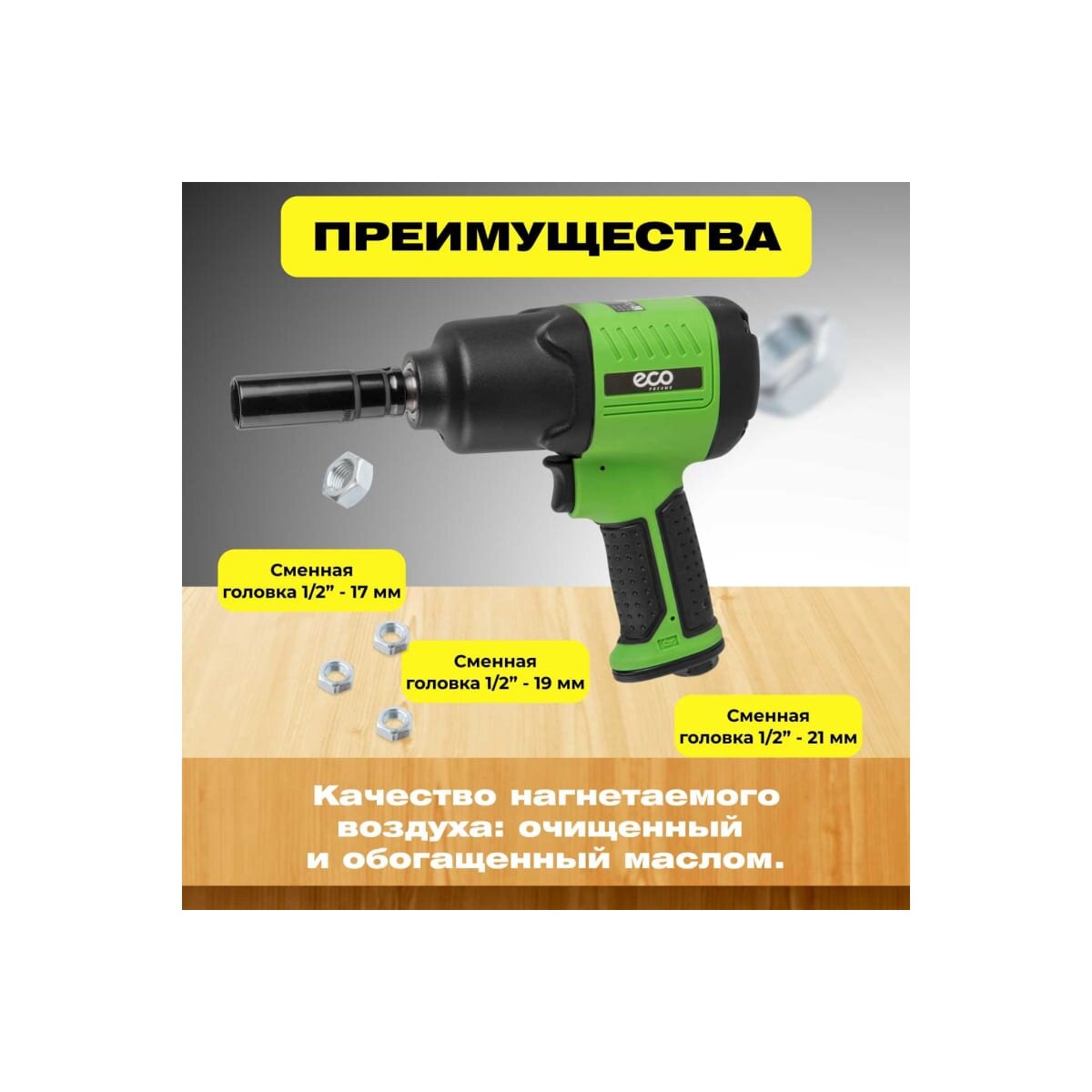 Пневмогайковерт ECO AIW-980S имеет эргономичный дизайн.