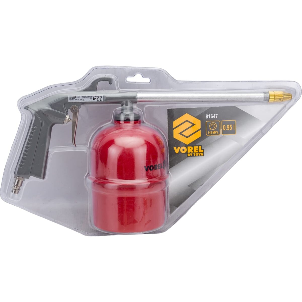 Пневматический промывочный пистолет VOREL 950мл 81647 предназначен для чистки различных поверхностей от загрязнений.
