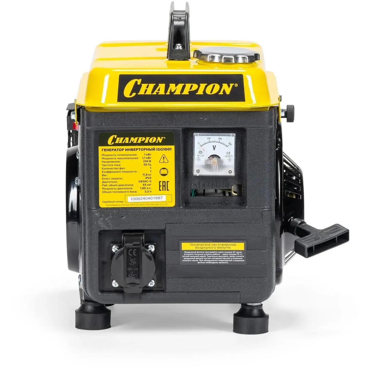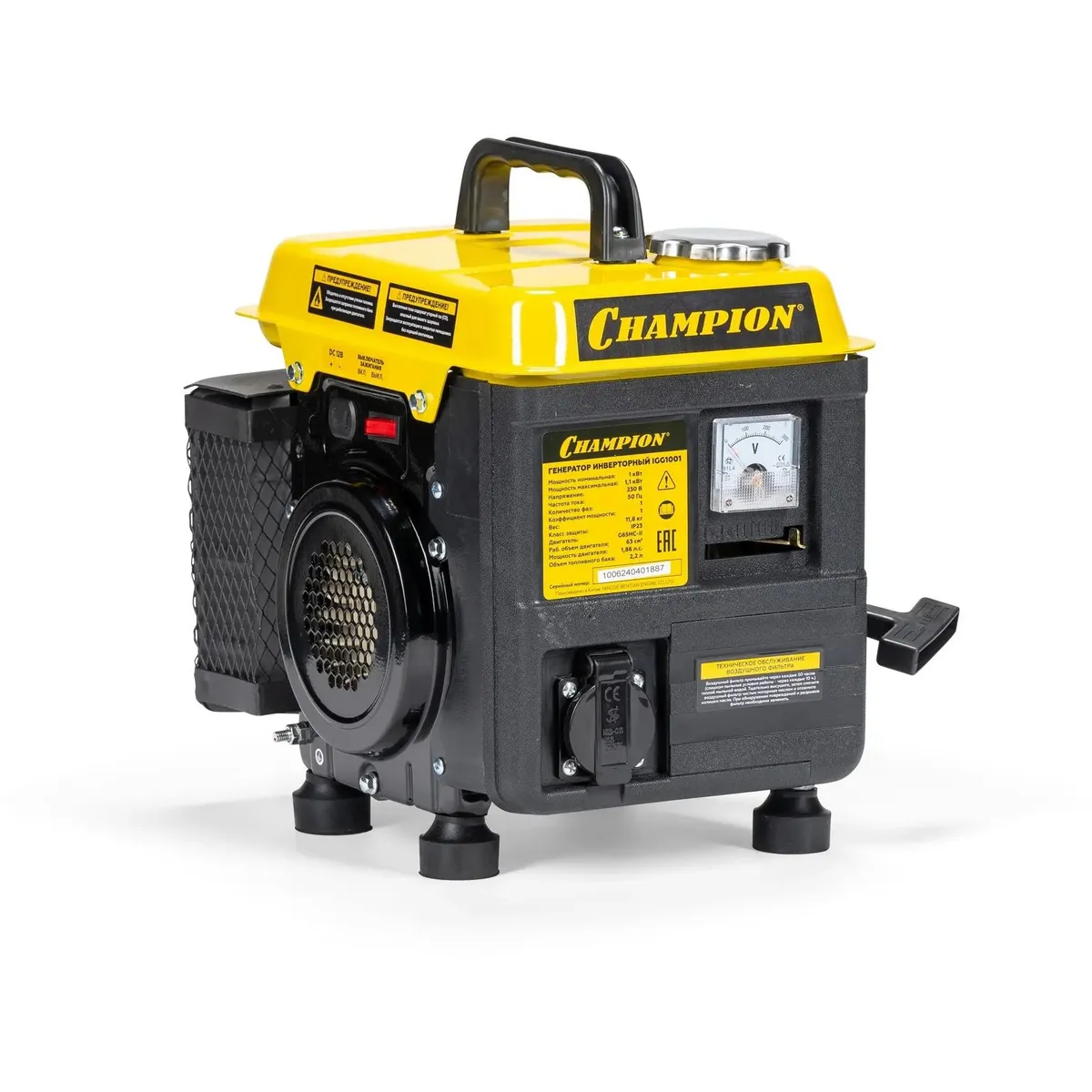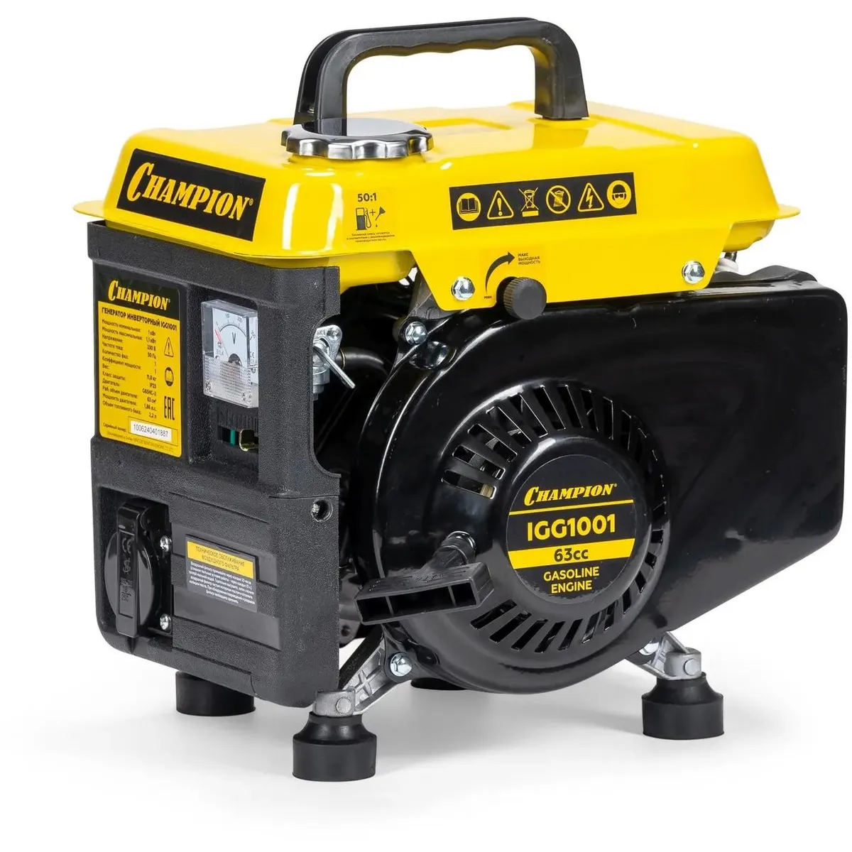 Мощность представленного генератора от бренда CHAMPION составляет 1.1 кВт.