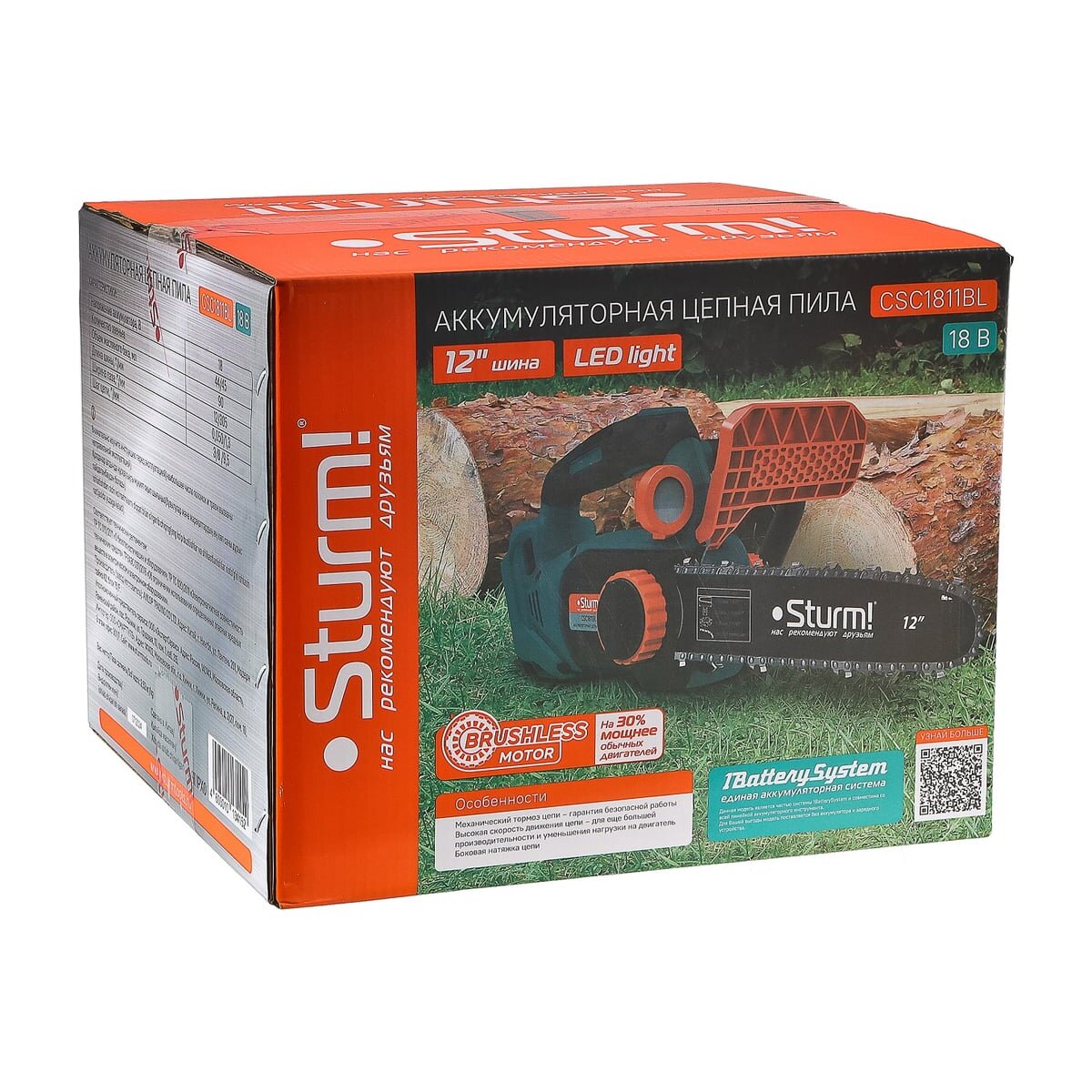 Пила цепная аккумуляторная б/щ Sturm!, CSC1811BL 18В, 1BatterySystem, шина 30 см, без АКБ и ЗУ