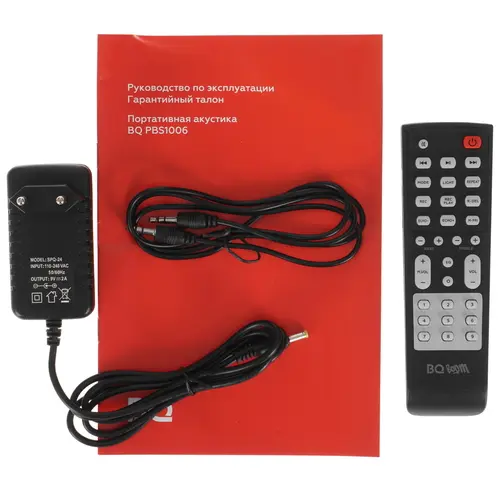 пульт ДУ, документация, аудиокабель, кабель USB