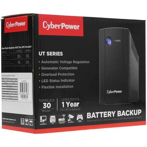 ИБП CyberPower UTI675E - гарант сохранения работоспособности компьютера, телевизора или любой другой техники в вашем доме после внезапного отключения электричества. Выходная мощность представленной модели равняется 675 ВА, столь впечатляющий показатель обеспечил ей длительное время работы до момента выключения - 28 минут (60 Вт). Этого времени вполне хватит, чтобы сохранить важные документы на компьютере, досмотреть интересный футбольный матч на телевизоре и доделать все операции, которые вы выполняли при помощи устройства, подключенного к представленному ИБП.