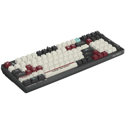 Полноразмерная клавиатура проводная+беспроводная A4Tech Bloody WS98 Pixels Red серого цвета является механической. Подойдет для любителей играть в видеоигры. Она имеет RGB подсветку клавиш, цвет которой можно легко поменять. Шумоизоляция корпуса позволяет снизить шум от нажатия клавиш. Модель может работать удаленно через Bluetooth или радиоканал.