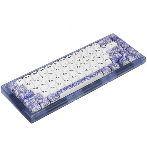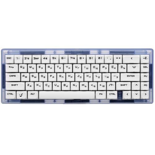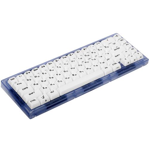 ARDOR GAMING Patron привлекает внимание полупрозрачным корпусом и кастомным кабелем. Устройство подключается к ПК через USB-провод длиной 1.8 м. Клавиатура идет в комплекте со сменными свитчами и кейкапами, двойным пуллером для аккуратной замены клавиш, кабелем и фирменной наклейкой.