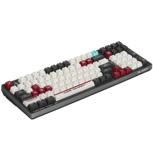 Механическая клавиатура проводная+беспроводная A4Tech Bloody WS98 Pixels Red серого цвета является полноразмерной. Подойдет для любителей играть в видеоигры. Она имеет RGB подсветку клавиш, цвет которой можно легко поменять. Шумоизоляция корпуса позволяет снизить шум от нажатия клавиш. Модель может работать удаленно через Bluetooth или радиоканал.