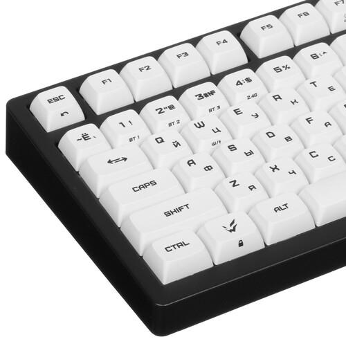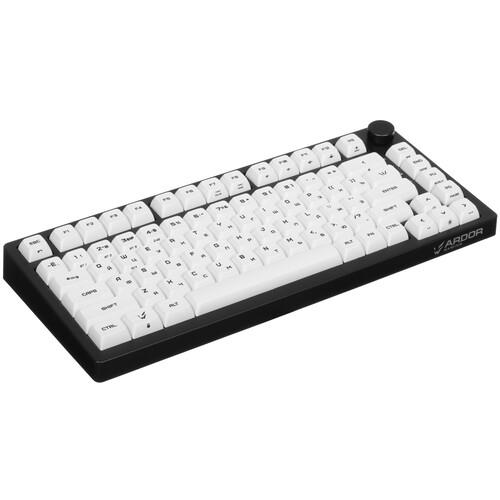 ARDOR GAMING Patron 75 оснащена съемным USB-проводом длиной 1.8 м и ресивером для работы по радиоканалу. Подключение по Bluetooth и совместимость с Windows не требует установки драйверов и настройки. Клавиатура с поддержкой горячей замены клавиш идет в комплекте с дополнительными кейкапами.