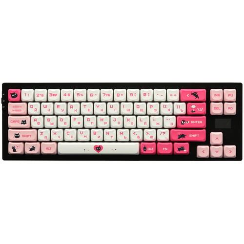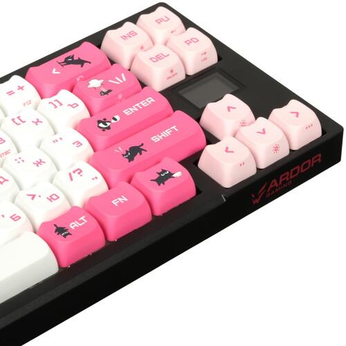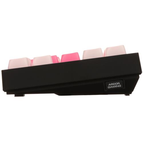 Механическая клавиатура проводная + беспроводная ARDOR GAMING Salem [AG-ZD-68GY30-HS-B] – игровая модель с дизайном в черном и розовом цветах и многоцветной подсветкой клавиш. Устройство оснащено линейными переключателями Gateron G Pro Yellow 3.0 с длиной пути 4 мм, расстоянием срабатывания 2 мм и жизненным циклом 100 млн нажатий. В модели реализована система быстрой замены свитчей. Конструктивным преимуществом устройства является шумоизолированное исполнение пластикового корпуса.