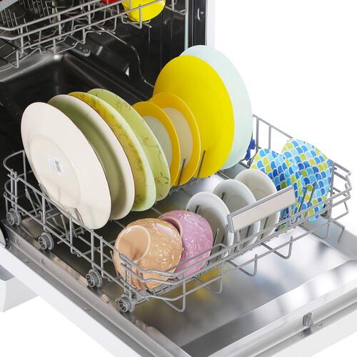 Посудомоечная машина MAUNFELD MWF12S выполнена в белом корпусе стандартного размера 84.5x59.8x60 см. Она содержит две корзины и рассчитана на загрузку 12 комплектов посуды. Для размещения большой посуды скобы можно складывать, а также регулировать среднюю корзину по высоте. Аппарат при полной загрузке расходует 11.5 л воды. Безопасную эксплуатацию обеспечивает полная защита от протечек, которая реализуется через корпус и шланг.