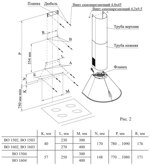Диаметр фланца воздуховода, см