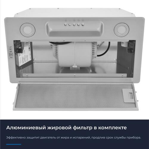 Мощный мотор с лёгкостью очистит воздух в помещении до 15 м². Расположенная под наклоном панель управления исключает дискомфорт в использовании. Классический европейский размер позволит встроить прибор в стандартный шкаф шириной 60 см. Две мощные светодиодные лампы по 2 Вт позволят полноценно осветить рабочую поверхность. Прибор может работать в режимах отвода и рециркуляции, благодаря дополнительной установке угольного фильтра ZKF6.