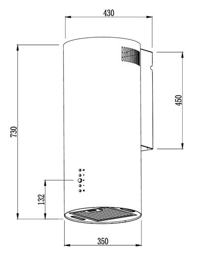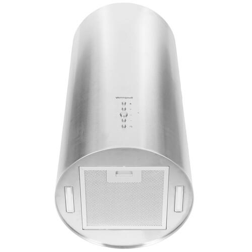 Вытяжка пристенная Weissgauff Gracia 70 IX представлена в цилиндрическом корпусе себеристого цвета. Спереди расположены круглые кнопки управления. С их помощью можно регулировать интенсивность воздушного потока из 3 скоростей, активировать таймер и освещение. В нижней части расположен съемный алюминиевый фильтр. Он защищает двигатель от жировых отложений и испарений.