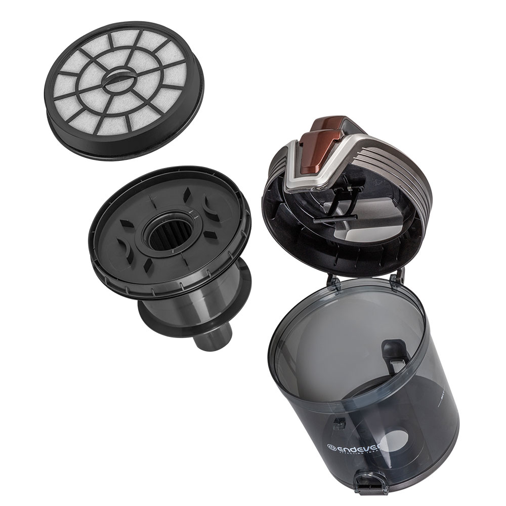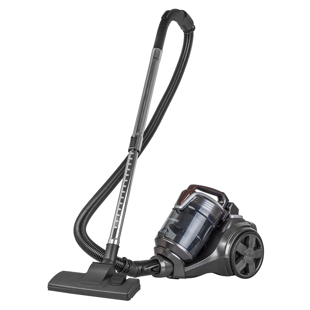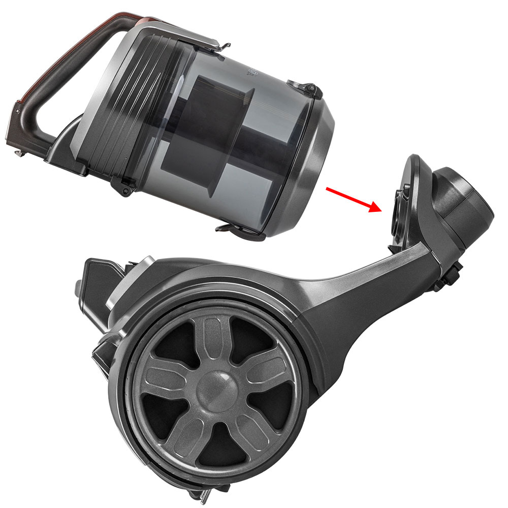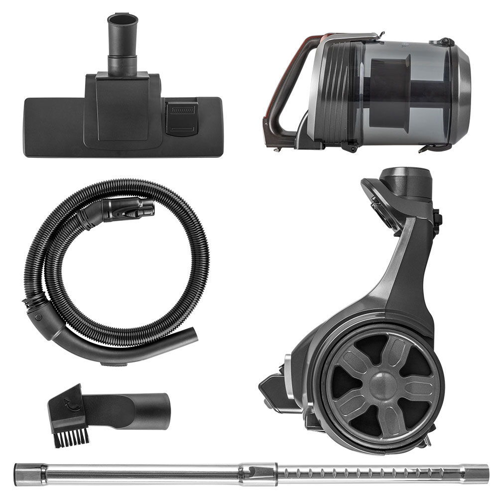 Тип уборки – сухая, Вместительный резервуар для мусора, Гибкий шланг с регулятором воздушного потока на ручке, Инновационное строение корпуса и фильт ров, минимизирующее уровень шума, Кнопка для автоматической смотки шнура, Моющийся циклонный фильтр, Крепление для парковки трубы, Колеса с резиновым покрытием
