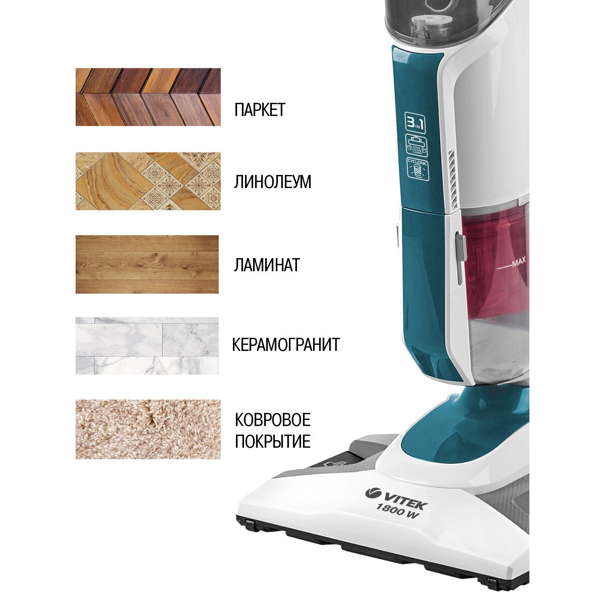 Дополнительно 3-в-1 вертикальный пылесос, паровая швабра, ручной пароочиститель