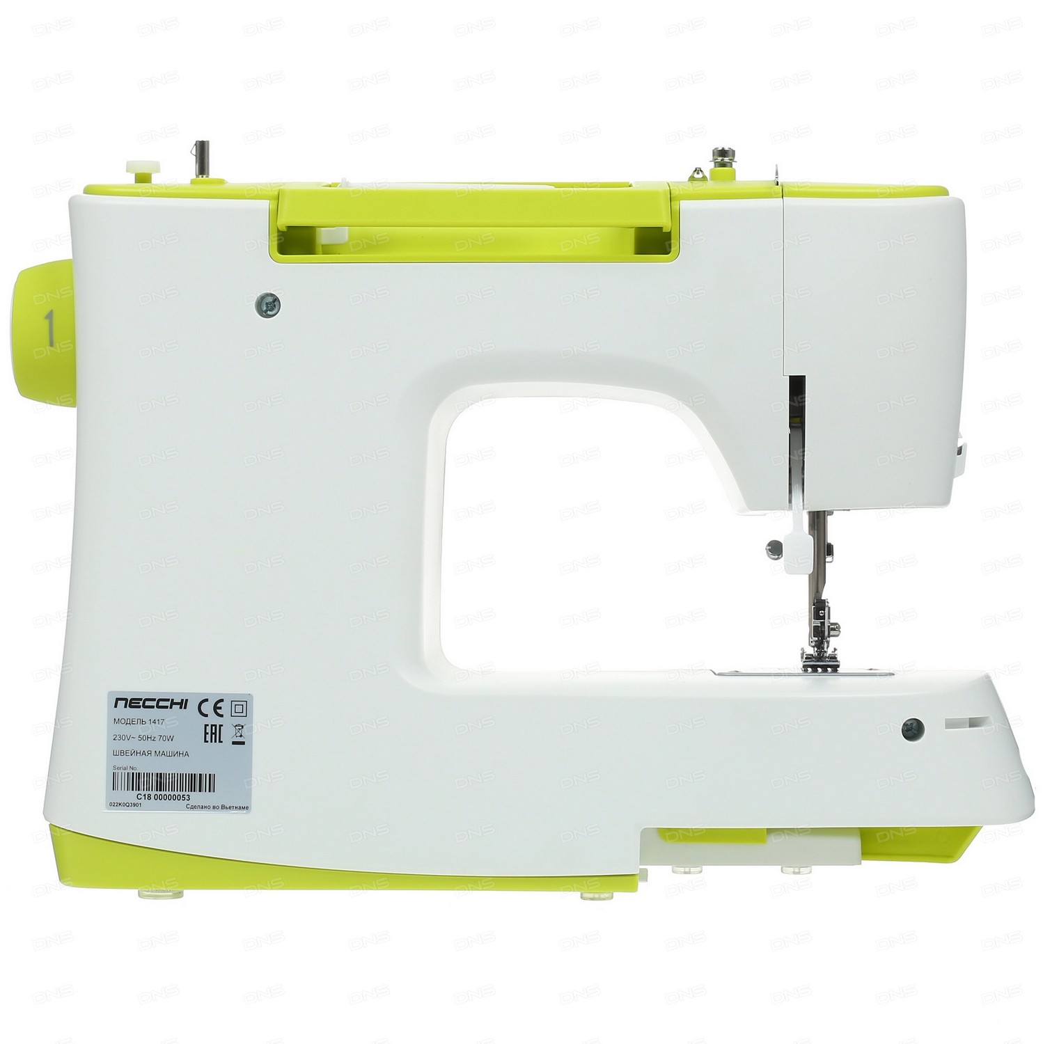 Она оснащена вертикальным качающимся челноком, рукавной платформой и отсеком для аксессуаров.