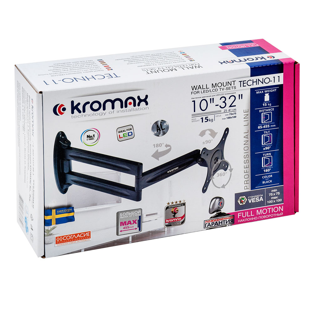 Дополнительная информация: угол наклона ±90°, угол поворота 180°