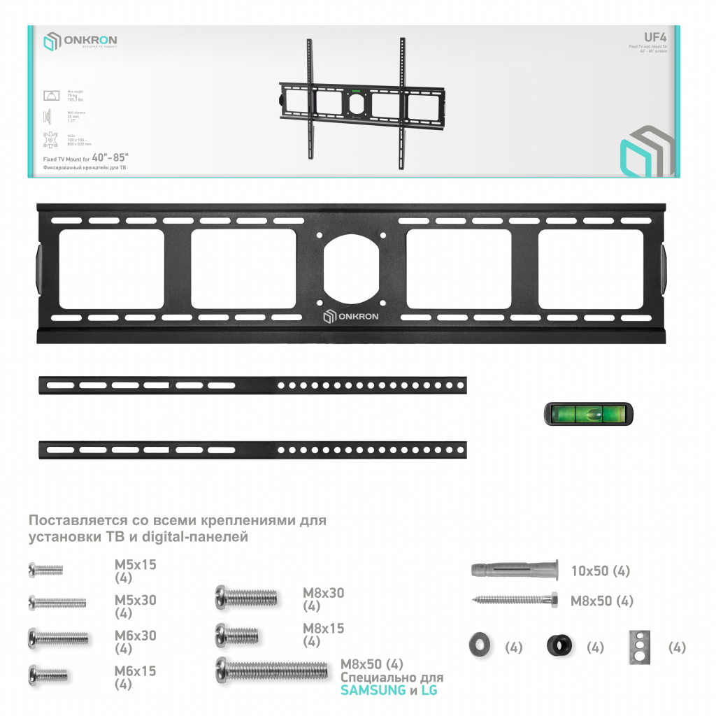 Стандарт Vesa: 100x100, 200x100, 200x300, 300x200, 200x200, 300x400, 100x200, 300x300, 200x400, 400x200, 500x400, 400x300, 400x400, 600x600, 600x400, 700x400, 800x400, 800x600, 300x100, 400x600, 500x500, 500x600, 800x500, 600x200, 600x300, 500x200, 500x300