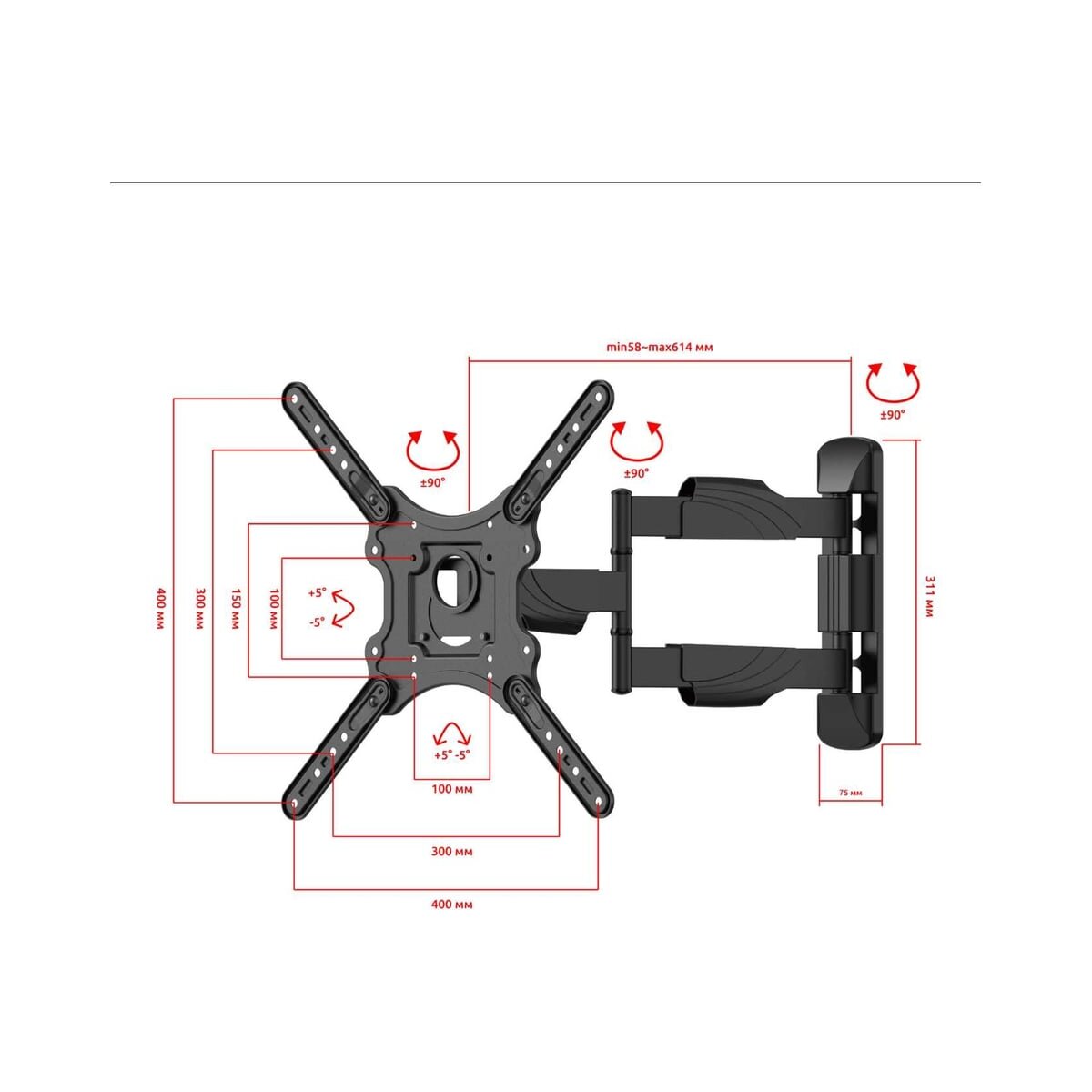 Тип кронштейна: Настенный наклонно поворотный