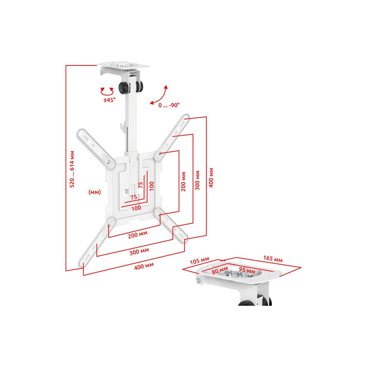 Полуавтоматический, складной, потолочный, подполочный кронштейн для телевизора или монитора с возможностью навески под мансарду UNITEKI LCD3440CBW в белом эксклюзивном окрасе. Он обладает широчайшими возможностями наклона и поворота, складывания к потолку, полке или мансарде и передвижением в вертикальной плоскости. Вы можете занимать любое удобное положение при просмотре ТВ или работе за монитором за счет широких возможностей регулировки угла наклона и изменения высоты.