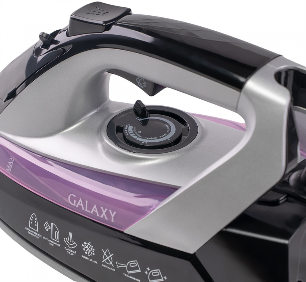 утюг, мощность 2200 Вт, керамическая подошва, мощный паровой удар, мощность подачи пара до 30 г/мин, паровой удар, вертикальное отпаривание