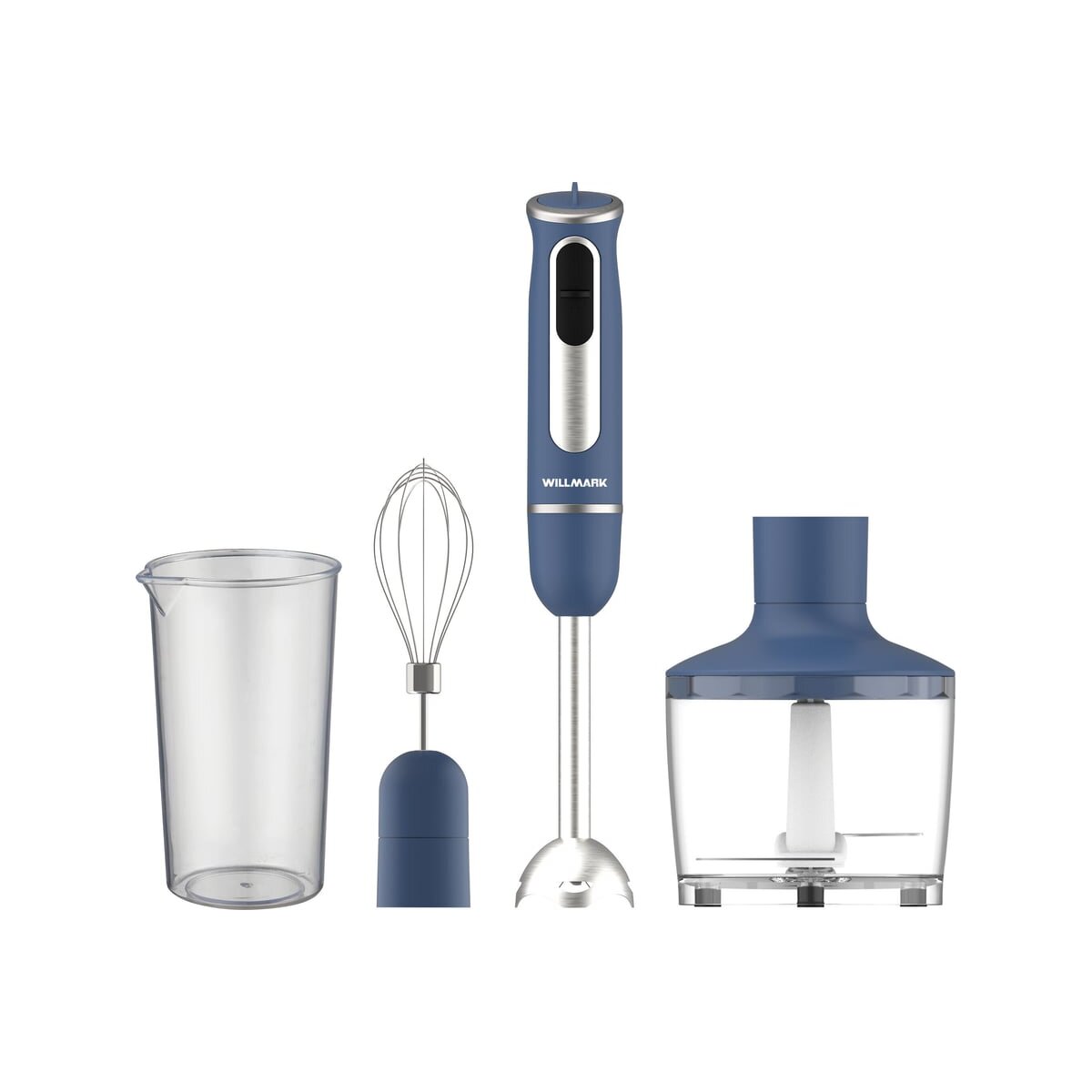 Блендер WILLMARK WHB-1470BS – погружной блендер 3 в 1 предназначен для измельчения, взбивания и смешивания разных ингредиентов. Корпус блендера выполнен из пластика с покрытием SOFT TOUCH для комфортного использования. Мощность прибора составляет 700 Ватт. На блендере установлены два режима работы , а также плавная регулировка скорости. В комплект изделия входит стальная насадка блендер, насадка венчик и измельчитель с емкостью чаши 860 мл. Насадки оснащены острыми ножами из нержавеющей стали и обеспечат идеальное смешивание, взбивание или измельчение продуктов. За счет тонкой длинной ножки пользоваться насадкой блендер можно будет даже в высокой посуде. Для удобства при использовании предусмотрен мерный стакан емкостью 600 мл. Конструкция измельчителя исключает разбрызгивание измельчаемых продуктов. Блендер WILLMARK WHB-1470BS не вызывает сложностей при эксплуатации и не занимает много места при хранении. При правильном использовании изделие прослужит Вам в течение многих лет. Готовьте с удовольствием с техникой WILLMARK.