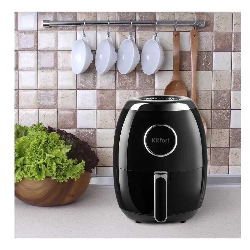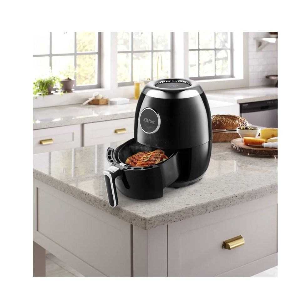 Современный аэрогриль Kitfort КТ-2234 интересен не только стильным дизайном: он может использоваться как аэрогриль, а также как аэрофритюрница и духовка.