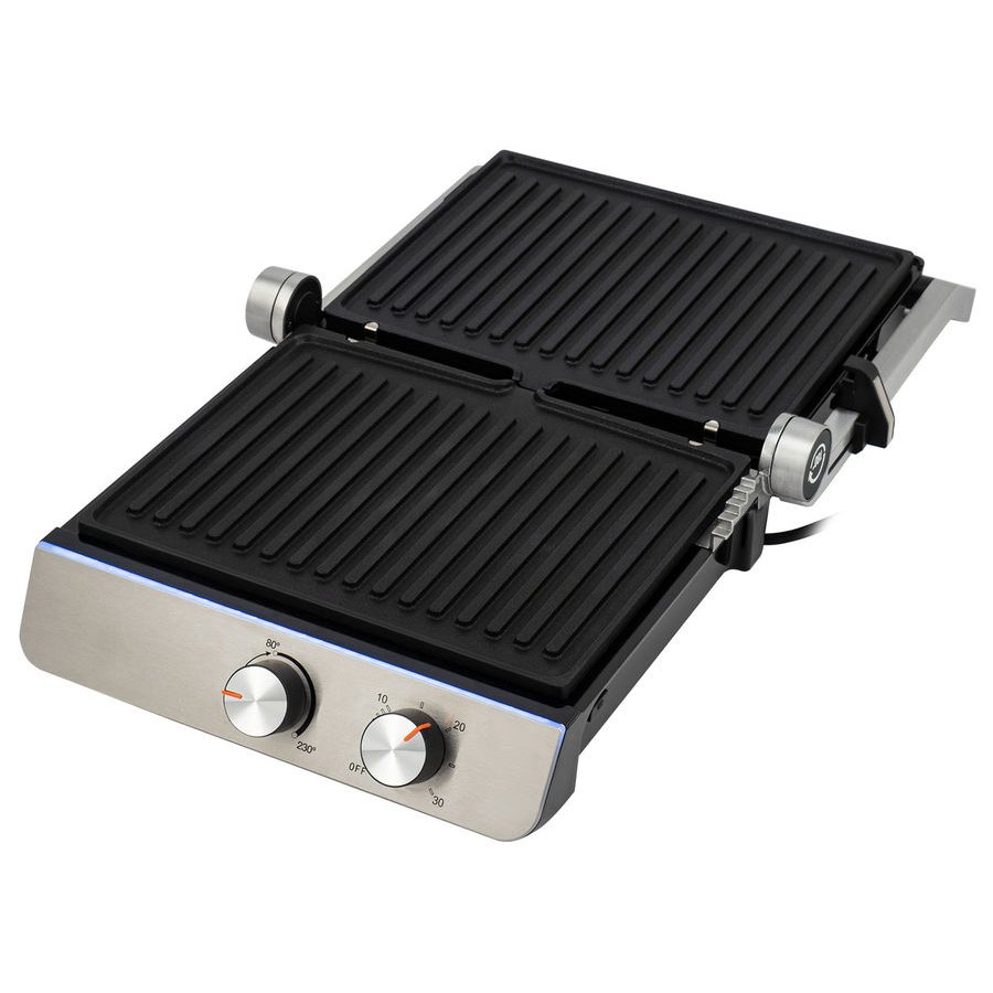 Верхняя крышка имеет «плавающий» фиксатор и адаптирует свое положение под любой продукт с максимальным касанием к панели нагрева.