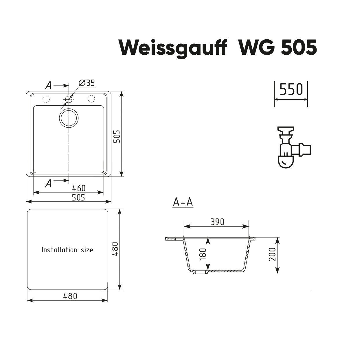 Габариты мойки, мм:505 х 505 х 200