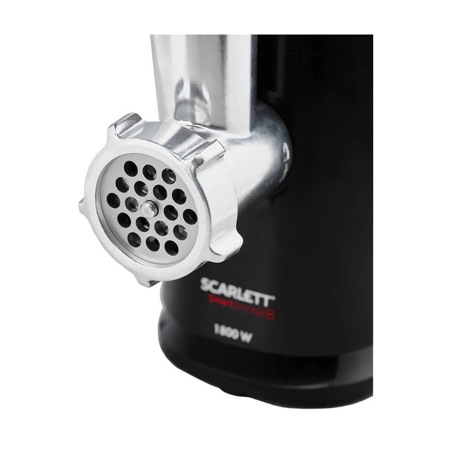 Электромясорубка Scarlett SC-MG45S71 станет вашим верным помощником в приготовлении мясных полуфабрикатов: благодаря мощному мотору она производит до 2 кг фарша в минуту. В комплект входят 2 решётки с отверстиями различного диаметра. А ещё вы сможете набить домашние колбаски и приготовить кеббе – трубочки из мясного фарша с разнообразными начинками. Соответствующие насадки прилагаются. Прокручивая жёсткое, жилистое мясо, волокна которого блокируют шнек, используйте реверс, и вам не понадобится разбирать и чистить горловину прибора. В корпусе есть специальный отсек для второго диска – он не потеряется и всегда будет под рукой. Также предусмотрено место для сматывания сетевого шнура, что очень удобно при хранении устройства. Ножки прорезинены и не позволят прибору соскользнуть со стола.
