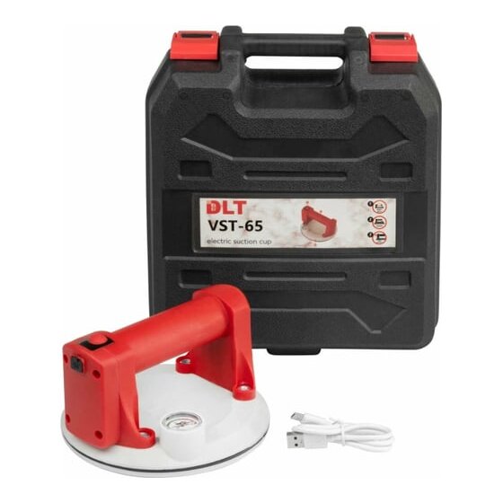 Присоска DLT VST-65 оснащена встроенным электрическим насосом, датчиком давления и манометром давления для визуального контроля. Датчик давления анализирует силу разрежения воздуха и автоматически включает насос, когда требуется восстановить необходимые параметры вакуума (автоматическая подкачка).