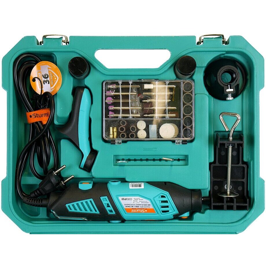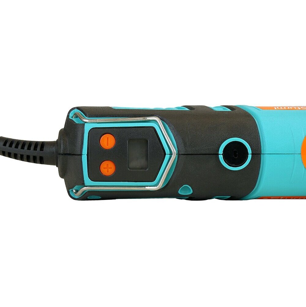 Электрический гравер Sturm GM2318FS — маневренное универсальное устройство для широкого спектра работ: резка, сверление, полирование, гравирование, шлифование, фрезерование различных материалов: металл, дерево, камень, стекло, пластмасса и т. д. Высокоточная цифровая настройка оборотов с ЖК-дисплеем позволит подобрать требуемую скорость под отдельную задачу. Также данная модель предоставляет возможность установки цанг трех различных диаметров 1,6/2,4/3,2 мм, что допускает применение большого множества отличных насадок. Для быстрой и удобной смены оснастки есть кнопка блокировки шпинделя.