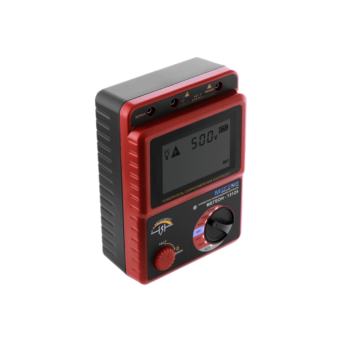 Тестовое напряжение: 100, 250, 500, 1000, 2500 В