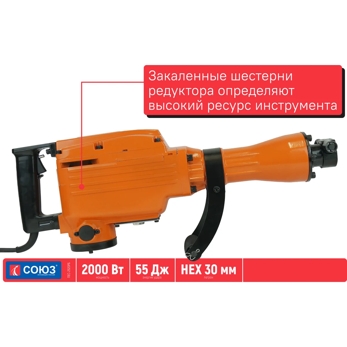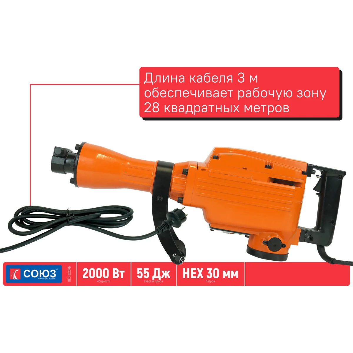 Технические характеристики Союз ПЕС-2520РБВид двигателящеточныйМощность2000 ВтТип патронашестигранныйУстройство шестигранникас проточкойСила удара55 ДжЧисло ударов при номинальном числе оборотов1400 уд/минЭлектр. регулировка оборотовнетПлавный пускнетПодсветканетЛегкий доступ к щеткамдаПика в комплекте1Зубило в комплектенетУпаковкакейсГабариты без упаковки640х230 ммВес нетто20 кгРазмер шестигранника30 ммДлина кабеля3 м