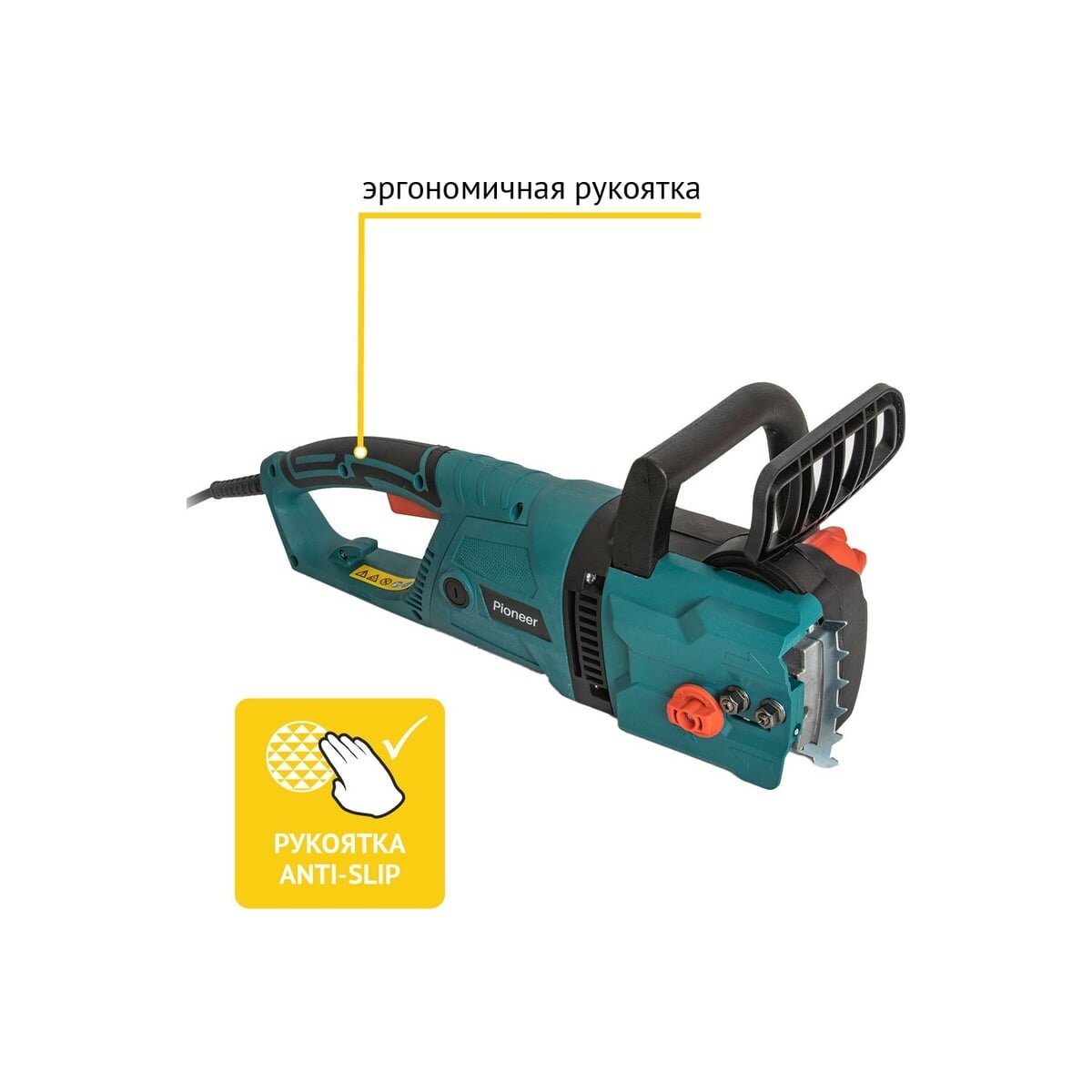 Цепная пила Pioneer ECS-2016-06V предназначена для работы с древесным материалом и деревом, а именно для распиловки бревен и обрезки деревьев.