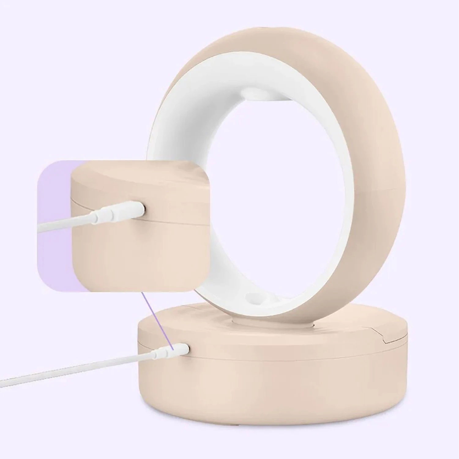 Чтобы включить устройство, вставьте USB Type-C в разъём на корпусе увлажнителя, затем подключите к блоку питания (в комплект не входит). Загорится индикатор. Нажмите кнопку «Вкл/Выкл» и начнется подача тумана и включится подсветка