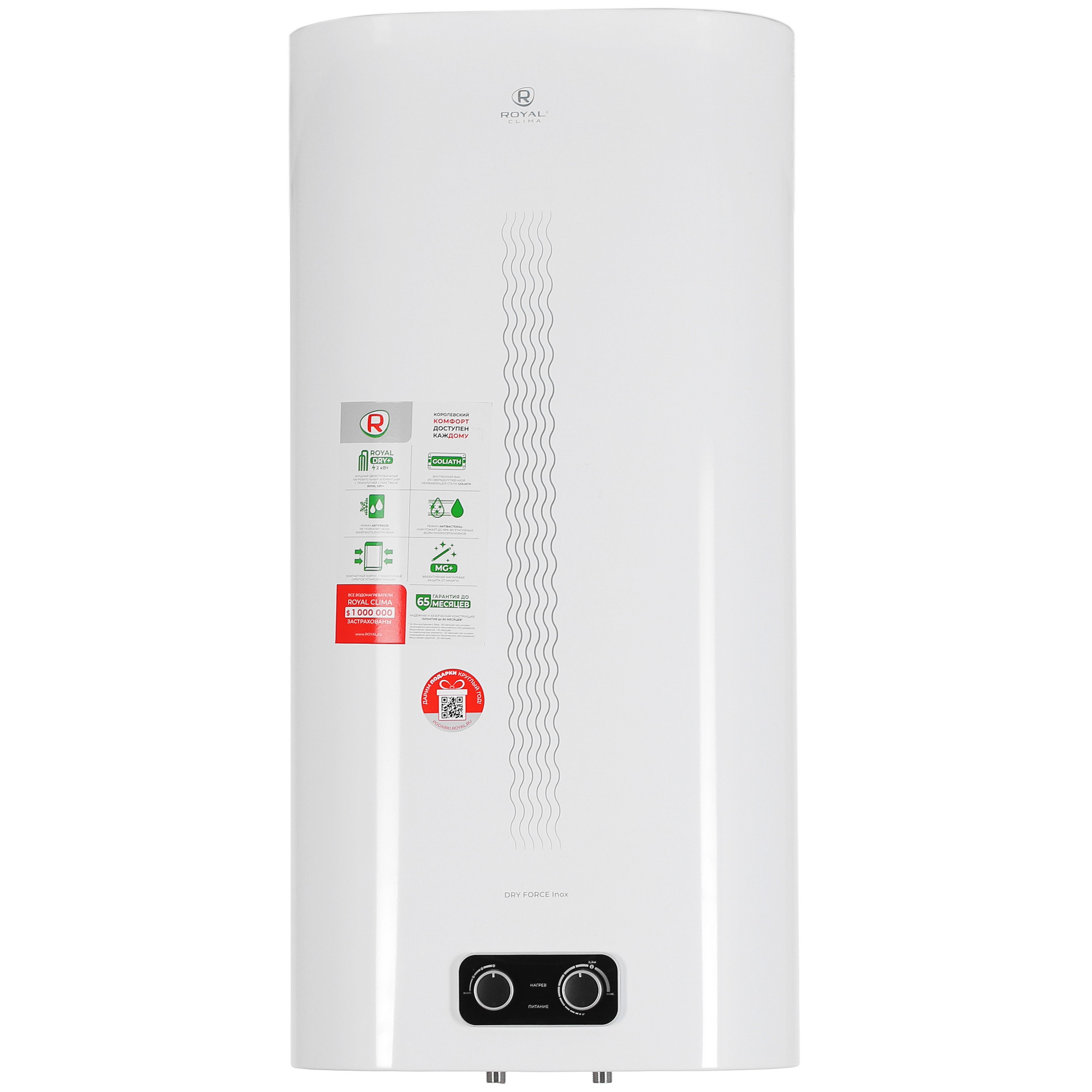 Безопасность – один из главных приоритетов Royal Clima RWH-DF80-FS. Водонагреватель оснащен защитой от перегрева, от включения без воды, и предохранительным клапаном. Вы можете быть уверены в его надежной и безопасной работе.