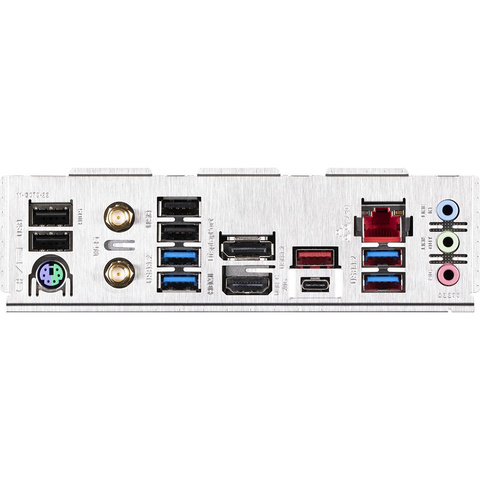 PS/2, 4 x USB 2.0, 4 x USB 3.2 Gen1, USB 3.2 Gen2, USB 3.2 Gen2x2 Type-C, HDMI, DisplayPort, RJ-45