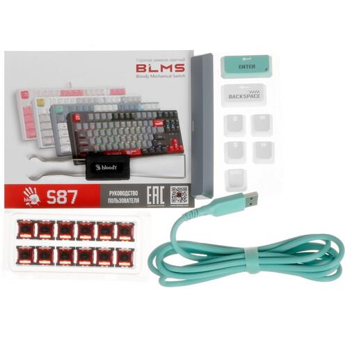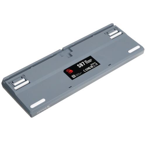 Клавиатура проводная A4Tech Bloody S87 Energy обладает встроенной памятью объемом 4 МБ для хранения макросов. Синхронизация модели производится с помощью 1.8-метрового отсоединяемого кабеля. Компактные размеры достигнуты отсутствием цифрового блока. Ресурс аксессуара рассчитан на 50 млн кликов.