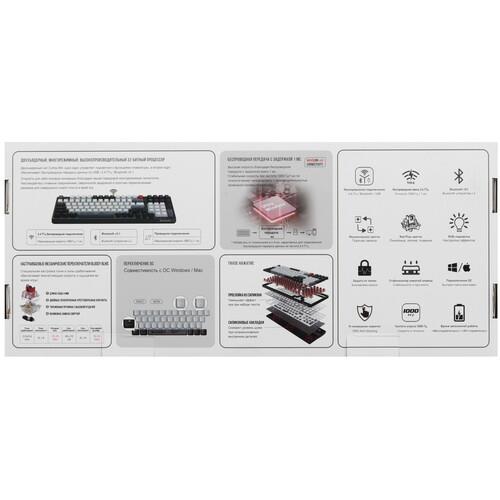 Пластиковый корпус клавиатуры A4Tech Bloody WS98 является шумоизолированным и блокирует громкие посторонние звуки. Автономная работа при беспроводном использовании обеспечивается с помощью встроенного аккумулятора. Двойной пуллер предназначен для бережного извлечения кейкапов. Интегрированная RGB-подсветка предупреждает ошибки ввода при слабом внешнем освещении. Особенностью аксессуара является возможность одновременного использования с 3 устройствами.