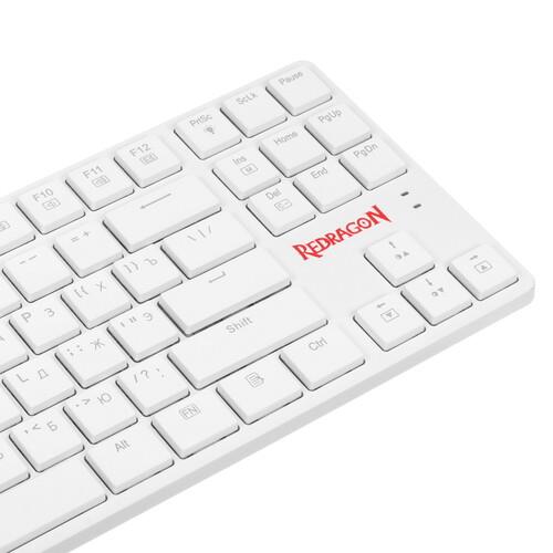 Клавиатура Redragon Anubis выполнена в элегантном белом корпусе с многоцветным освещением RGB, поэтому обеспечивает увлекательный и комфортный процесс игры. В данной модели установлены механические переключатели Outemu Tea, которые отличаются высокой чувствительностью, точностью обработки нажатий и сниженным уровнем шума. Низкопрофильная конструкция клавиш способствует быстрому отклику. К примечательным особенностям Redragon Anubis относится возможность проводной (кабель USB) и беспроводной (технология Bluetooth) синхронизации с ПК.