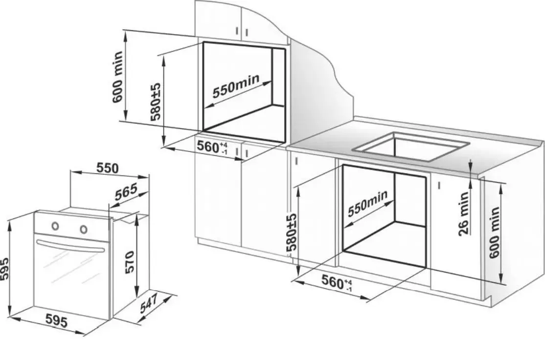 Размеры ниши для встраивания: 56 x 60 x 55 см.