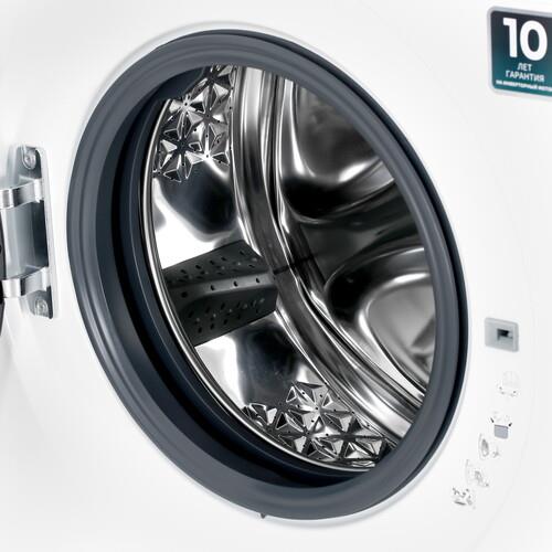 Тихий **инверторный двигатель** обеспечивает долговечность и низкий уровень шума во время стирки.