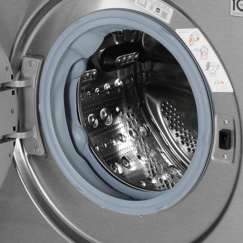 Панель управления с кнопками и дисплеем гарантирует простой выбор необходимых параметров. Модуль Wi-Fi позволяет организовать удаленное управление через фирменное приложение LG ThinQ на смартфоне. Система автовзвешивания автоматически определяет требуемое количество воды. Из особенностей LG TW4V5RS2S отмечаются защита от скачков напряжения, блокировка панели управления и регулируемые ножки.