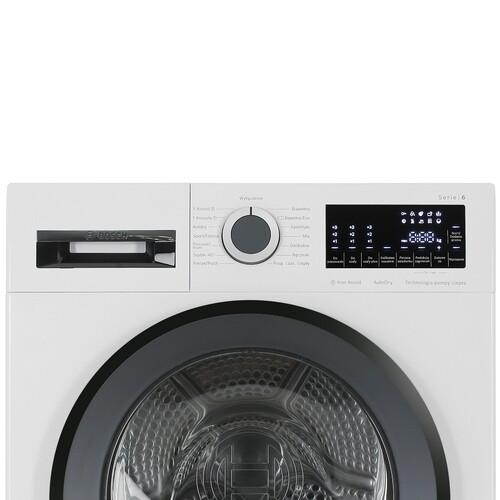 Bosch WQG241AKPL поддерживает 14 программ, доступ к которым открывается через сенсорную панель и поворотный переключатель. Для начала работы в конкретный временной интервал достаточно воспользоваться опцией отложенного запуска. Индикаторы оповещают о наличии неисправностей и необходимости очистить бак от конденсата.