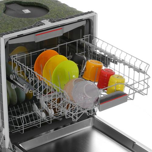 Встраиваемая посудомоечная машина Bosch SMV4HVX31E в стильном серебристом корпусе радует широким функционалом и модулем Wi-Fi. Вы можете управлять настройками через мобильное приложение из любого места. Индикатор «Луч на полу» помогает визуально отслеживать время окончания программы. Эргономичная система корзин с регулировкой верхнего ящика позволяет удобно размещать в ПММ до 13 комплектов посуды.