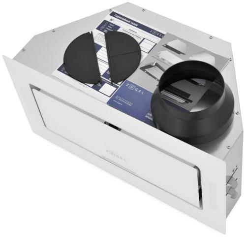 Мощный мотор с легкостью очистит воздух в помещении до 32 м². Удобная сенсорная панель управления из стекла реагирует на нажатия с первого раза. Классический европейский размер позволит встроить прибор в стандартный шкаф шириной 60 см. Таймер позволит отключиться прибору самостоятельно через 15 минут. Две мощные светодиодные лампы по 2 Вт позволят полноценно осветить рабочую поверхность. Переходник в комплекте позволит подключить воздуховод обоих размеров. Прибор может работать в режимах отвода и рециркуляции, благодаря дополнительной установке угольного фильтра ZKF4. Также возможна замена алюминиевого жирового фильтра на наноуглеродный многоразовый фильтр ZKF7.